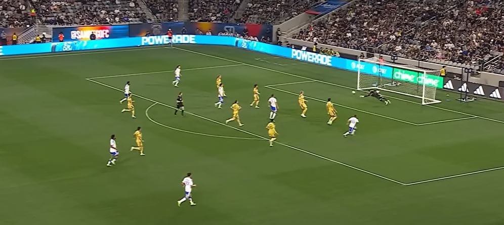 - Dreyer continues his run in behind the defender who was marking him due to the attention on Ingvartsen. The two Danes connect on a pass and Dreyer uses his elite skill to put the ball in the back of the net via a beautiful curled, one-time shot.