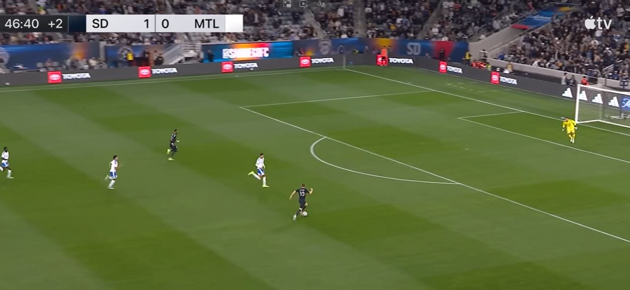 It's no secret that the way SDFC intends to play is by controlling possession and daring teams to go after them by pressing high up the pitch. In the past, some teams took the safer approach by not biting on the bait and hanging back on defense instead. Montreal, credit to them, went after the ball for the majority of the match. SDFC relished the moment, making the neighbors from the north pay time and time again.