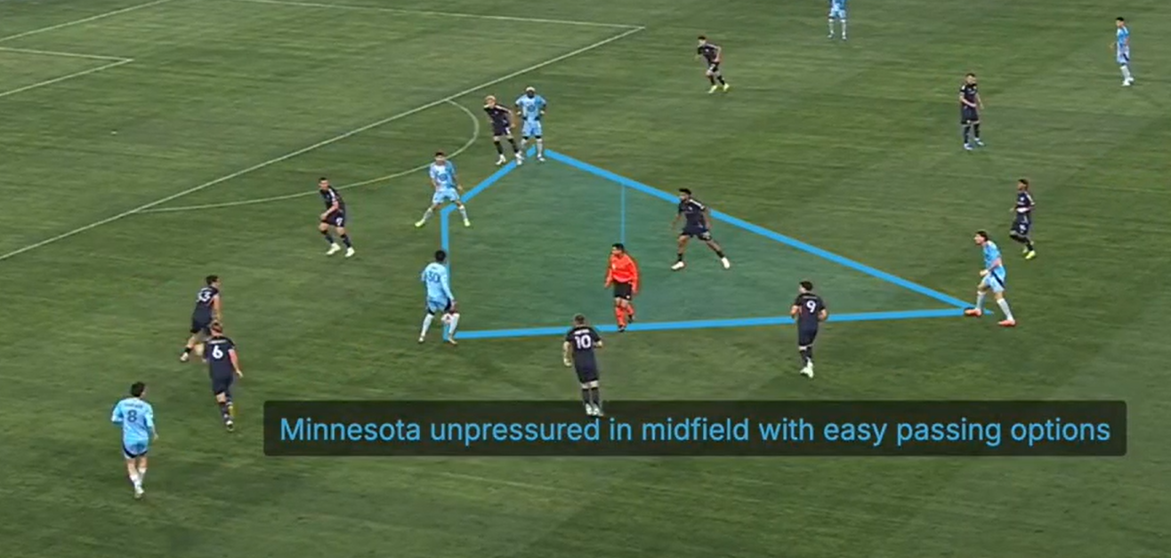 Take note of the amount of time and space Minnesota has on the ball in the first picture below: